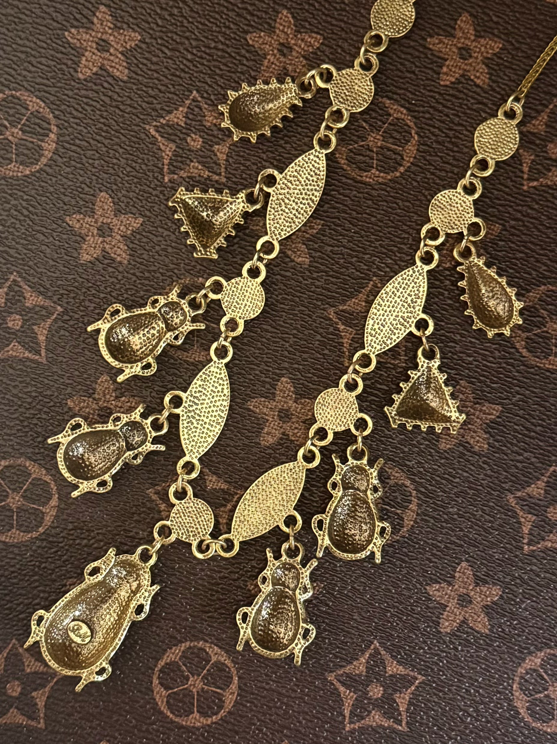 Vintage Heavy Craft Exaggerated Unique Niche Gold-Plated Brass Scarab Necklace