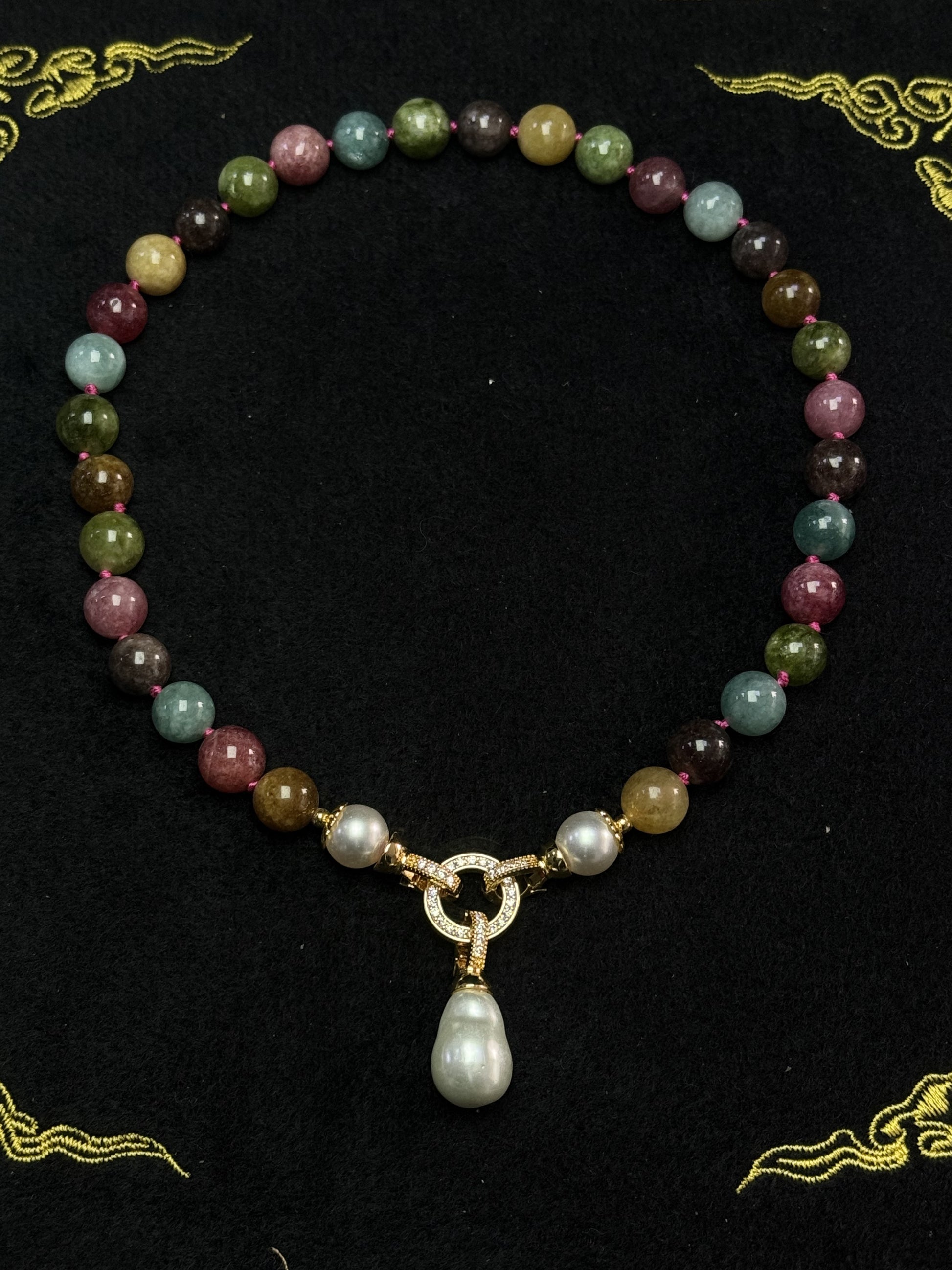 Minimalist Vintage Tourmaline Beaded Choker Necklace with Gold-Plated Clasp
