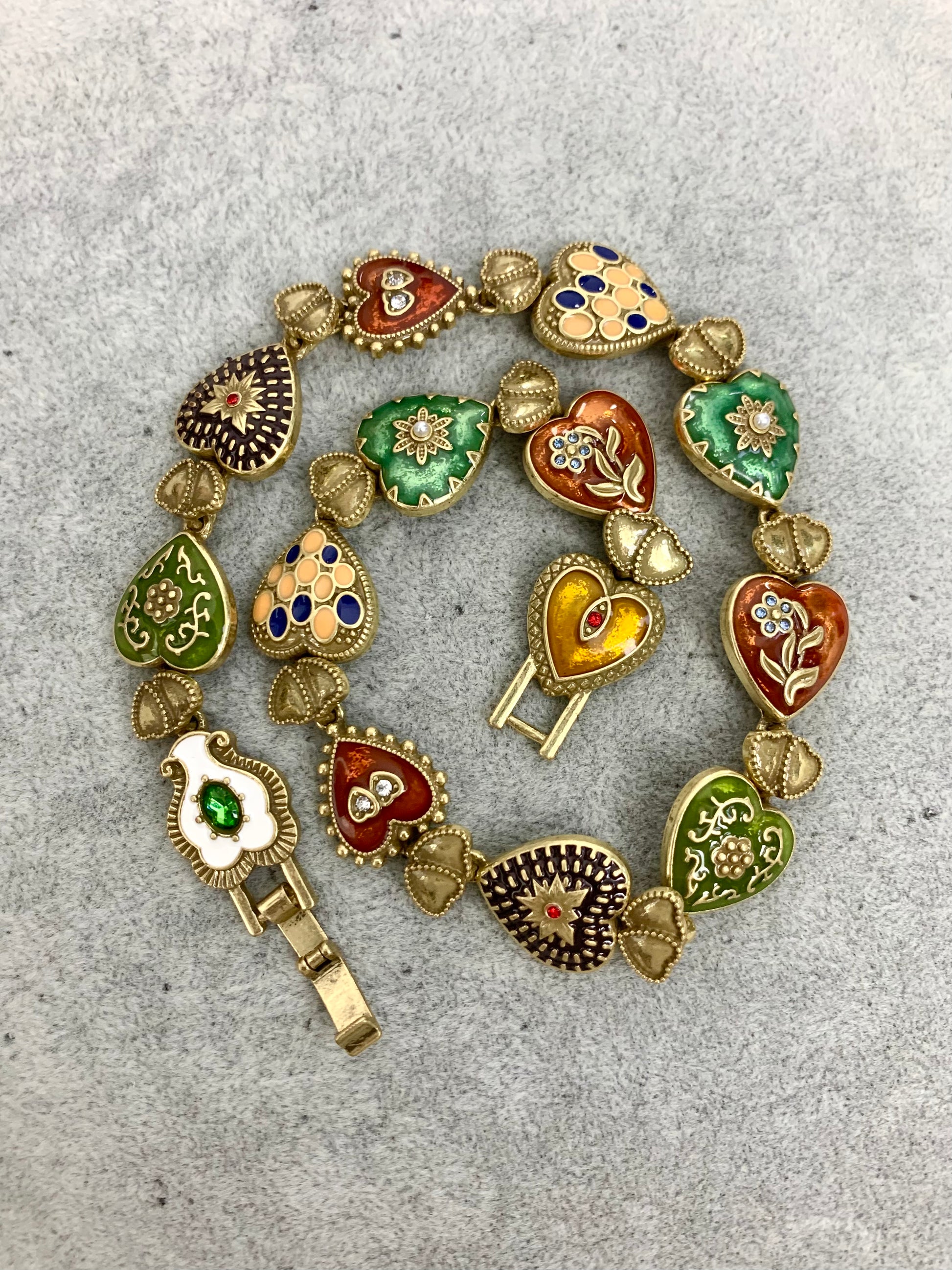 Vintage Heavy Craft Gold-Plated Brass Heart Pendant Choker Necklace