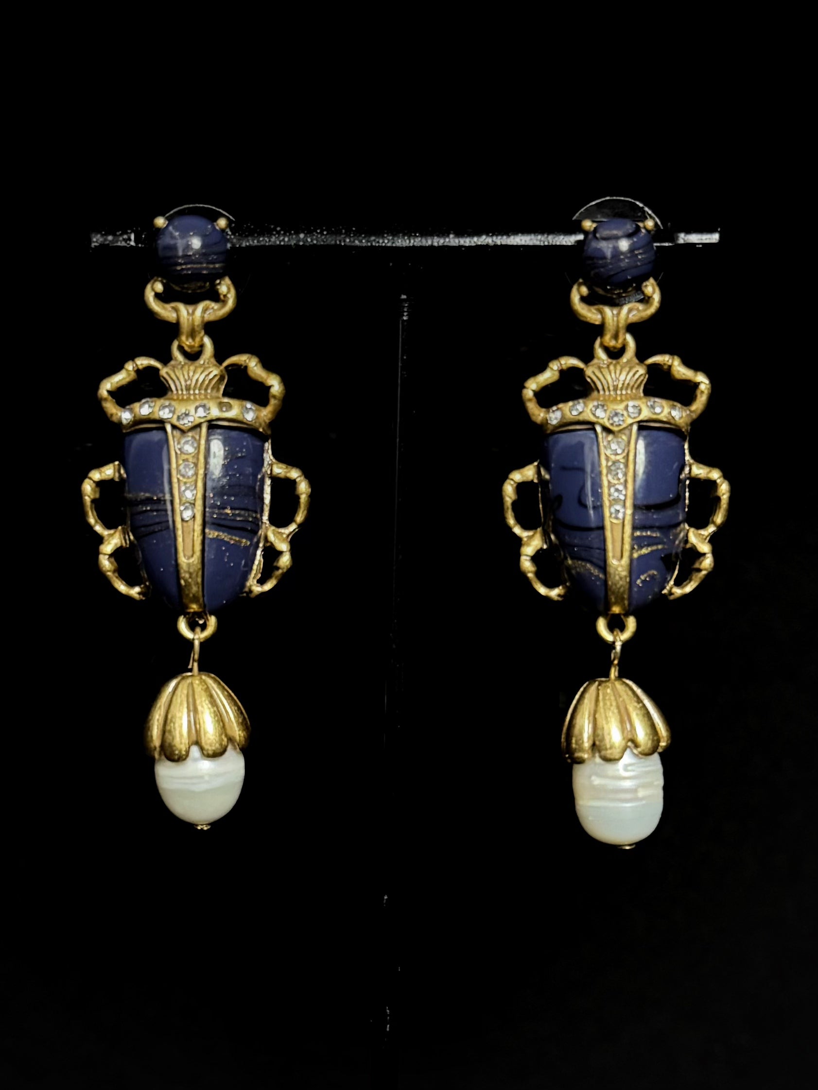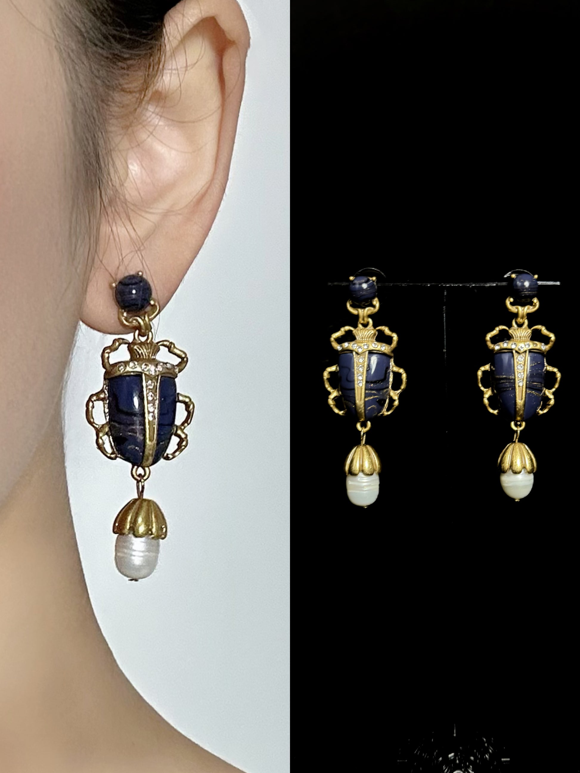 #VintageEarrings #BaroquePearls #InsectJewelry #GoldPlatedBrass #EnamelArt #RetroStyle #StatementEarrings #VintaraDesign #UniqueAccessories #ArtJewelry