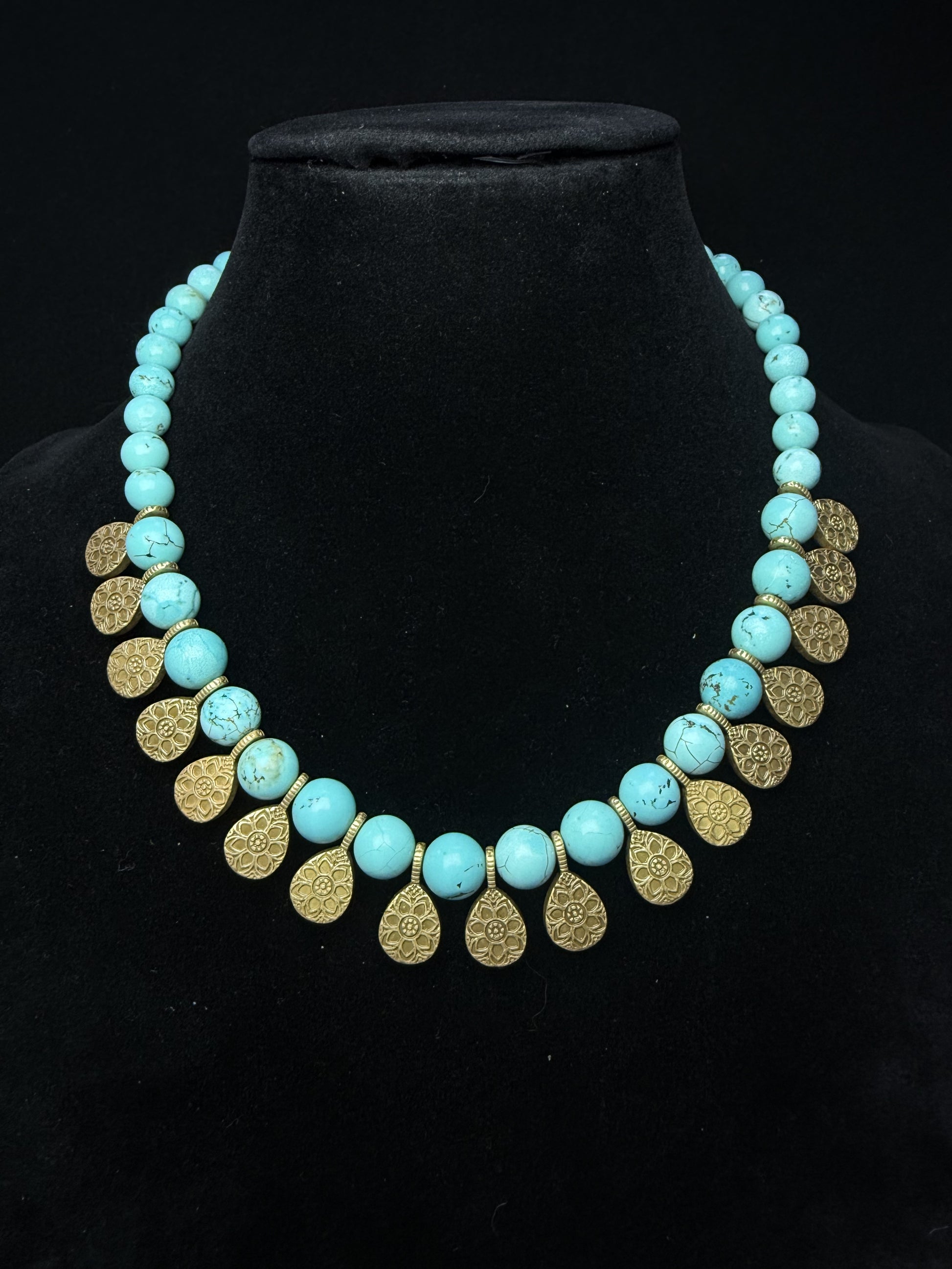 Vintage 18K Gold-Plated Brass Turquoise Choker Necklace