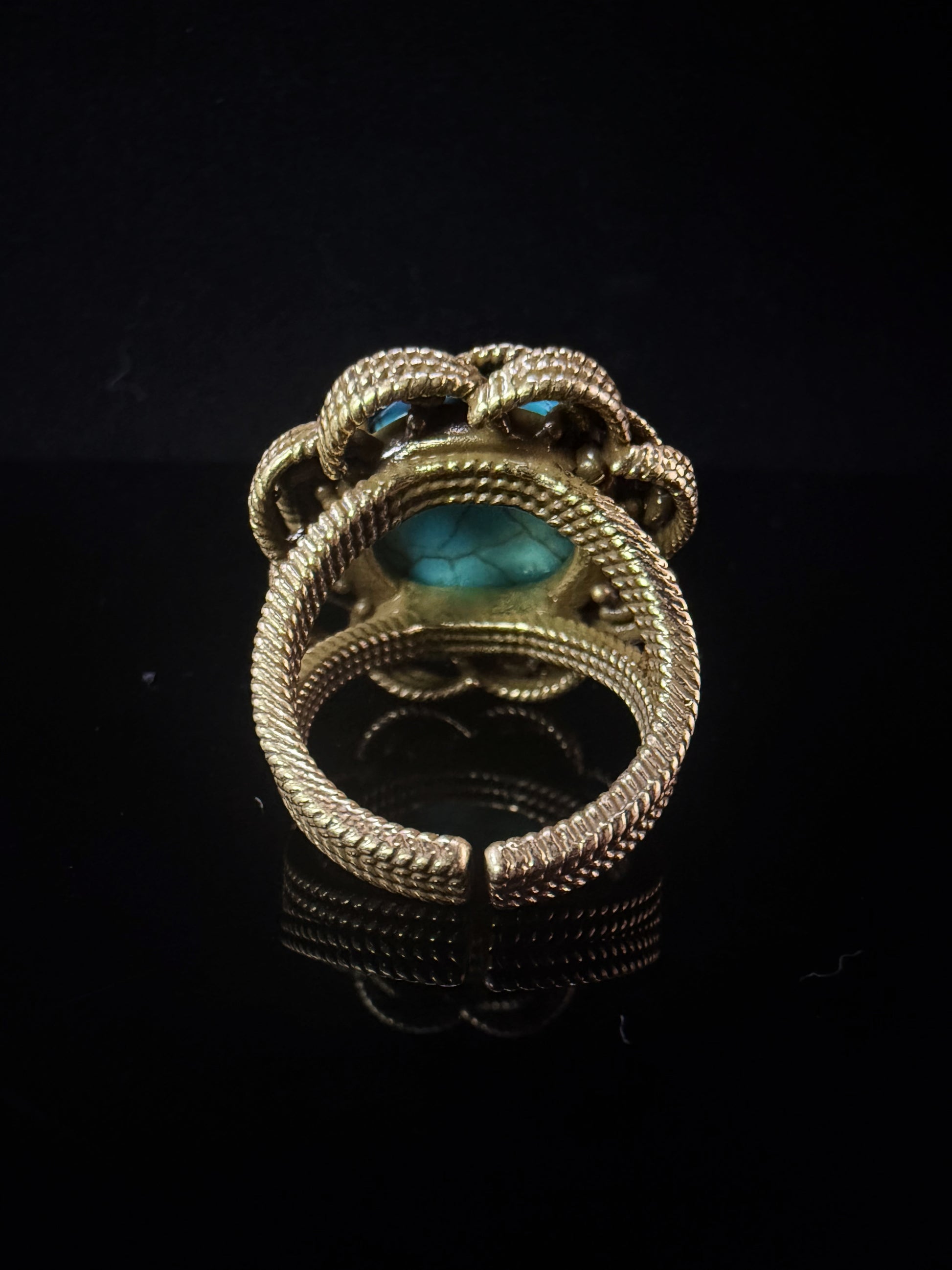Vintage Baroque Heavy-Craft 18K Gold-Plated Brass Turquoise Open Ring