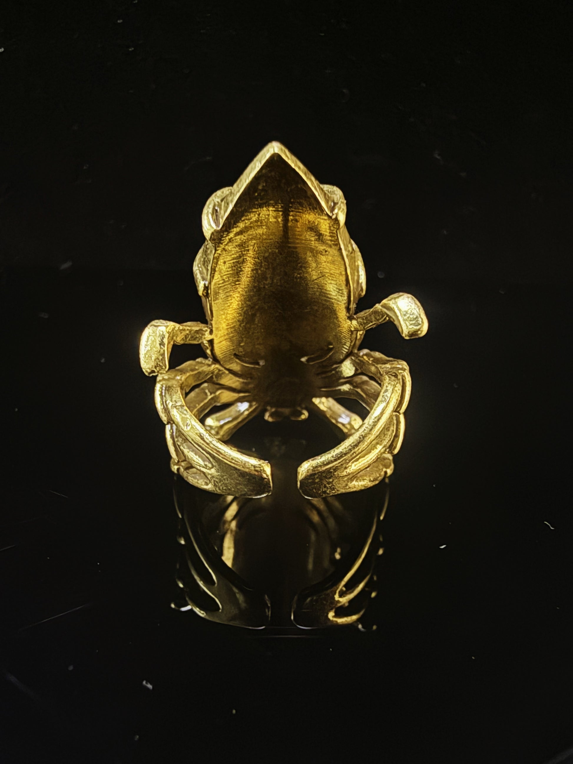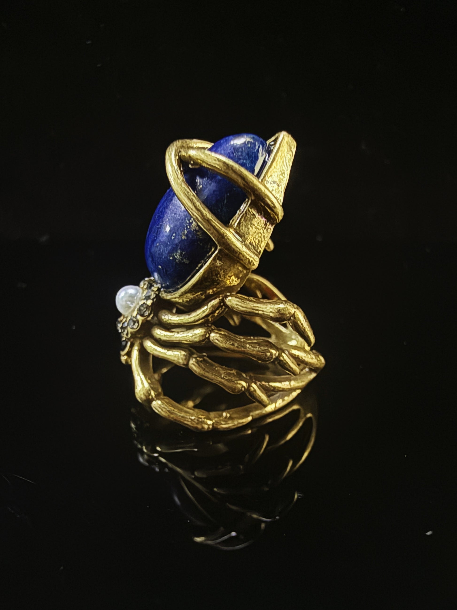 Discover the allure of vintage charm with this exquisite open ring, crafted from brass and plated with radiant 19K gold. The design showcases a striking lapis lazuli centerpiece, its deep blue hues evoking a sense of mystery and elegance. Intricate heavy craftsmanship brings a baroque-inspired touch, blending bold character with refined artistry. The open design allows for an adjustable fit, ensuring both comfort and style. Perfect for those who appreciate unique, statement jewelry, this ring adds a regal flair to any outfit, celebrating the harmony of tradition and individuality.