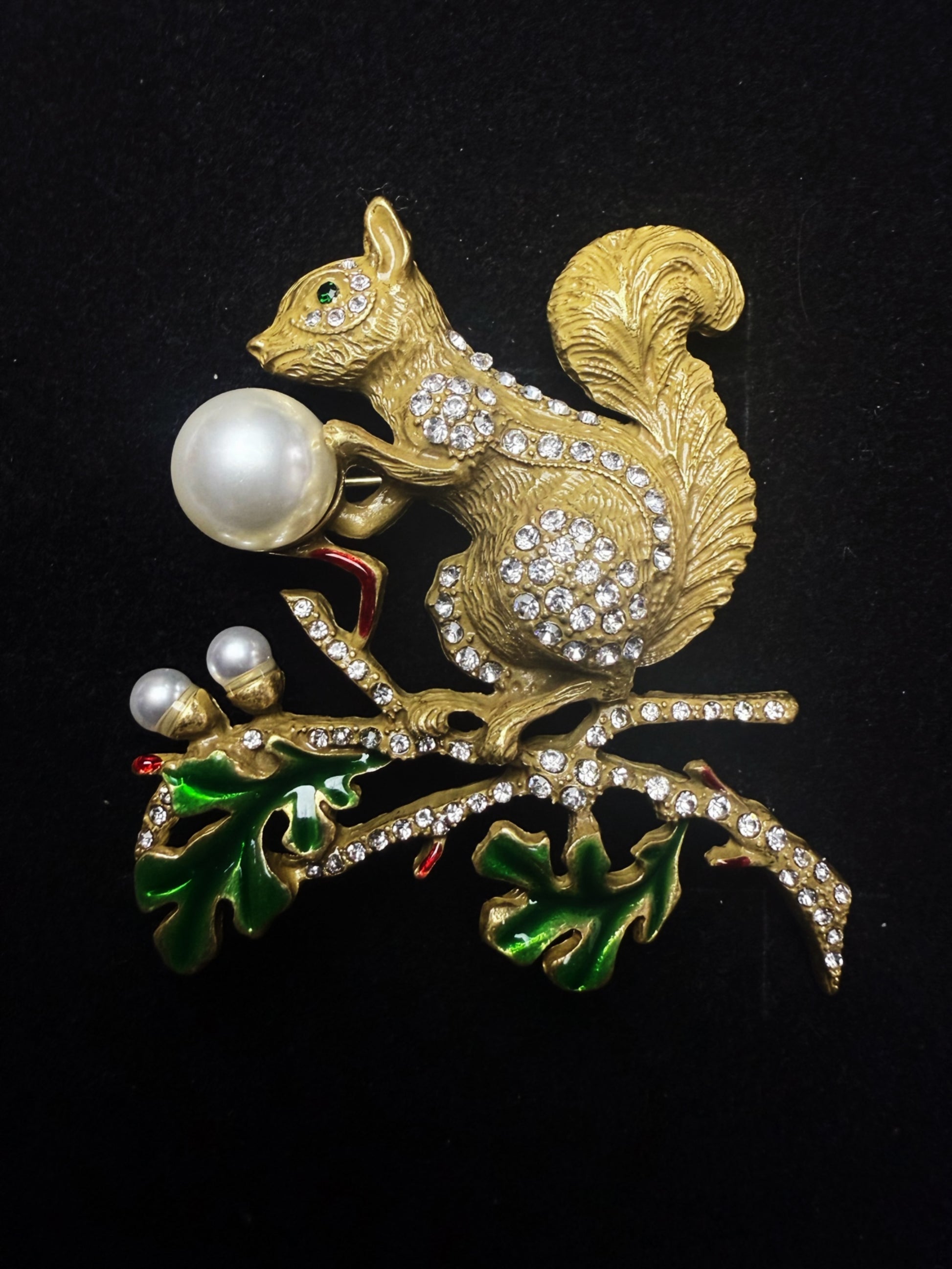 This exquisite vintage-style brooch features a charming squirrel perched on a tree branch, meticulously crafted from heavy brass and plated with 18K gold for a luxurious finish. The intricate detailing of the squirrel’s fur and the textured branch showcases superior craftsmanship, making it a timeless accessory. Designed for nature lovers and vintage jewelry enthusiasts, this classic brooch adds elegance and personality to any outfit. Its sturdy pin closure ensures secure wear on coats, scarves, hats, or bags. A perfect gift for collectors or anyone who appreciates unique, retro-inspired jewelry.