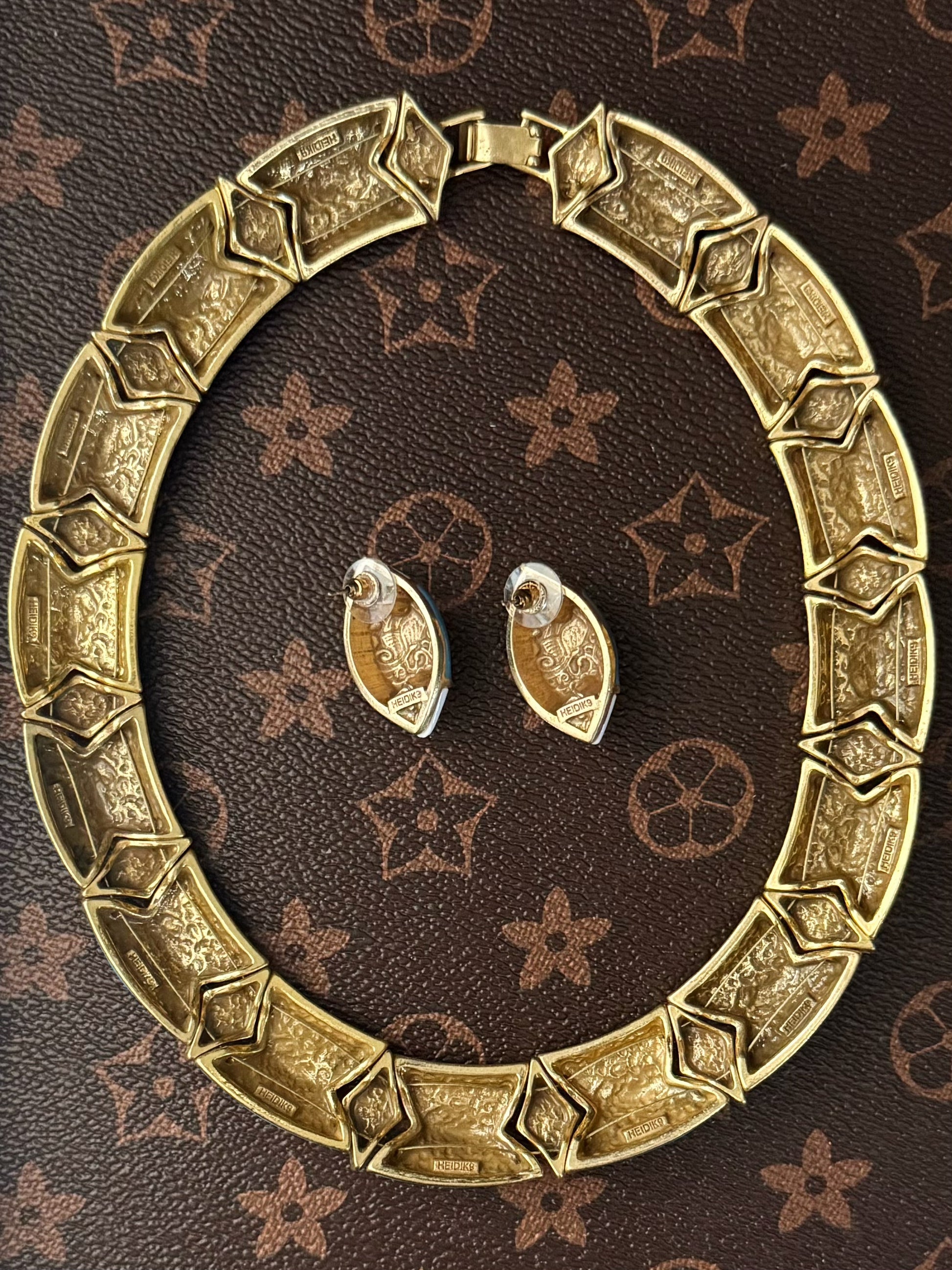 Vintage Heavy Brass Choker Set - Royal Blue Enamel Earrings & Necklace, Baroque Statement Jewelry, Gothic Bridal Gift