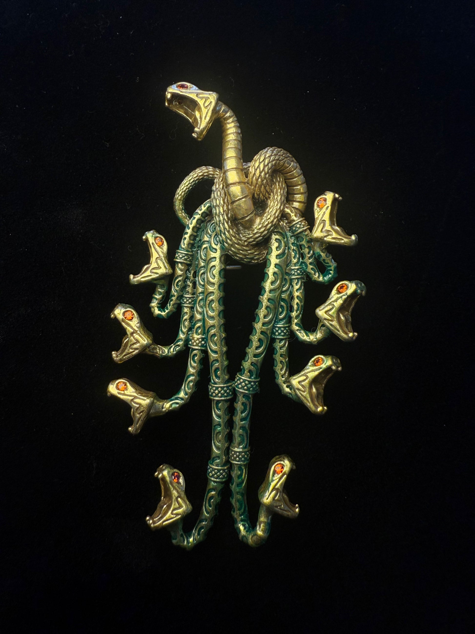 Vintage Mythic Hydra Brooch – Gold-Plated Brass in Classic Book-Inspired Design