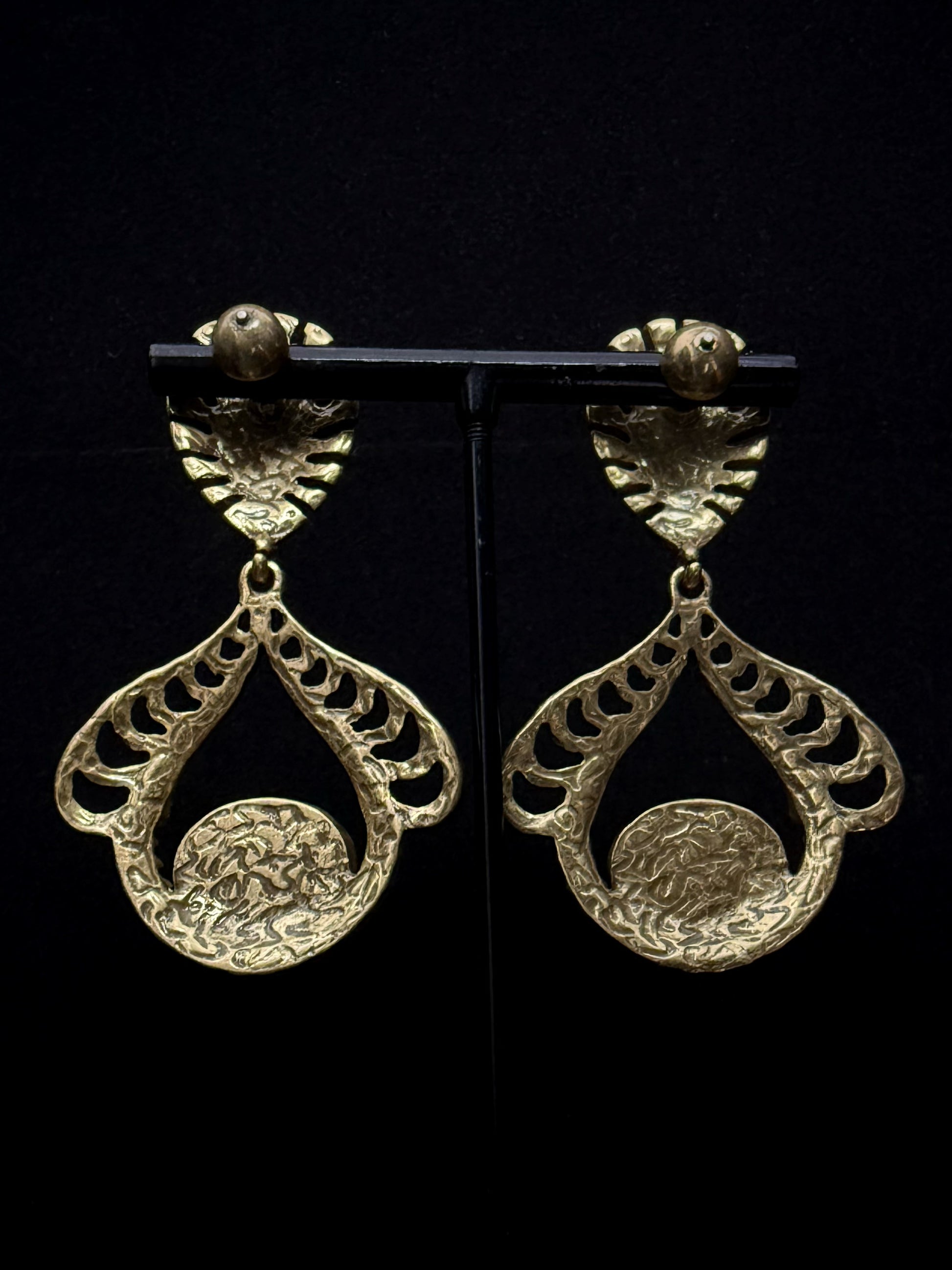 Inspired by French medieval elegance, these vintage earrings feature intricate gold-plated copper, sparkling blue rhinestones, and bold red natural stone drops. #VintageEarrings #FrenchVintage #MedievalStyle #GoldPlatedJewelry #BlueRhinestone #RedGemstone #StatementEarrings #RetroLuxury #HeavyworkDesign #ArtisanJewelry